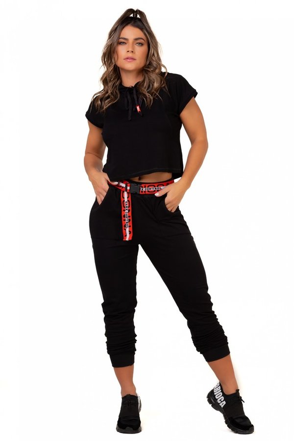Calça de desporto inspirada na tendência athleisure é a combinação perfeita entre conforto e estilo. Fabricado em moletim com ótimo caimento. Design moderno e despojado para te acompanhar a qualquer ocasião! Modelo possui bolsos e cinto frontal de elástico personalizado com fecho.