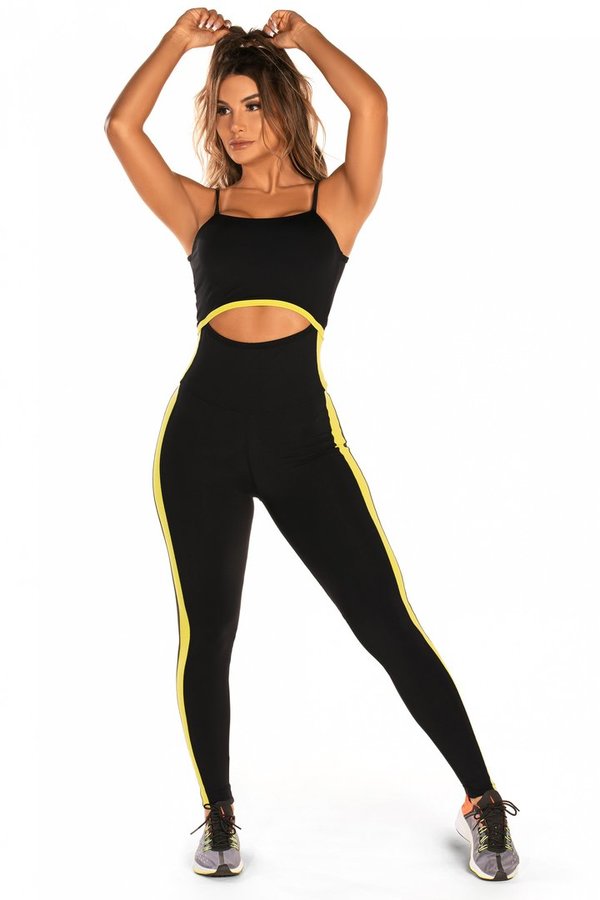 Macacão com bojo, fabricado em suplex poliamida de alta durabilidade, com ótima elasticidade e caimento. Abertura frontal trazendo feminilidade à peça, já que permite deixar o abdômen à mostra. Recorte em cor contrastante e strappy nas costas garantem um visual arrojado e moderno.